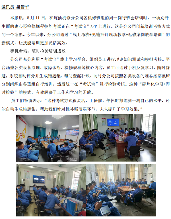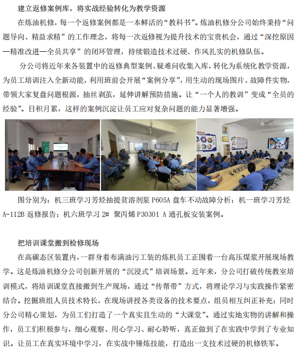 煉油機修分公司創(chuàng)新培訓模式鍛造機修精兵