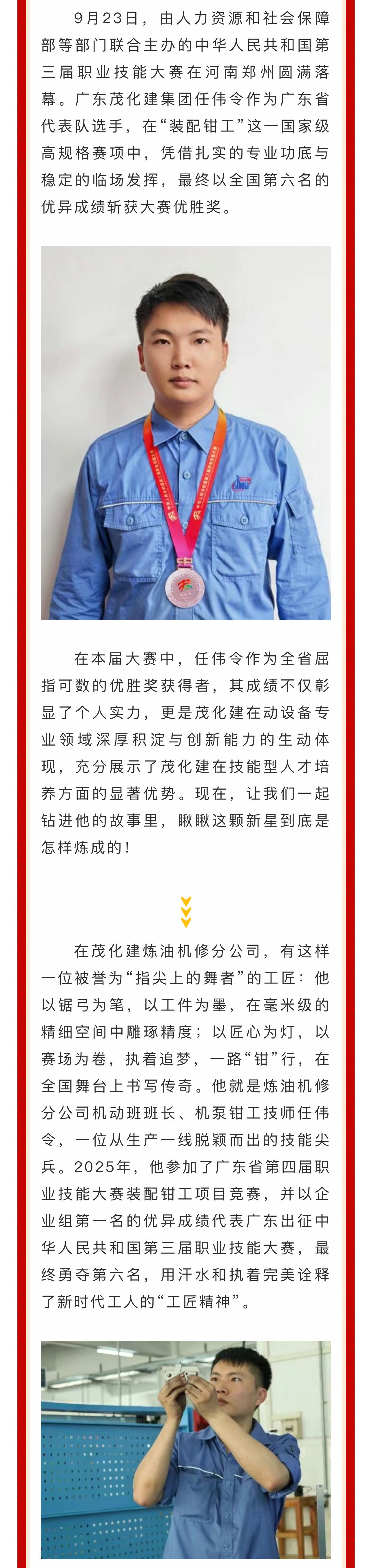 全國(guó)第六!廣東茂化建集團(tuán)任偉令斬獲第三屆全國(guó)職業(yè)技能大賽優(yōu)勝獎(jiǎng)